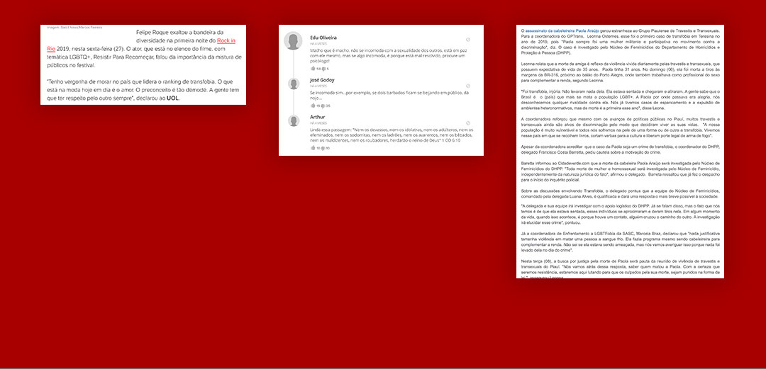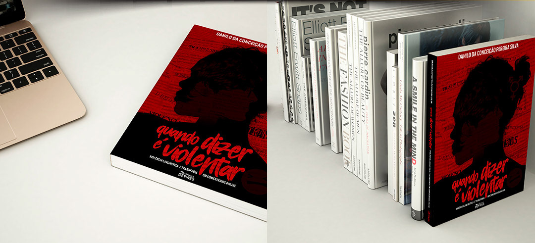 Na textura foram usados recortes de notícias sobre o tema do livro.