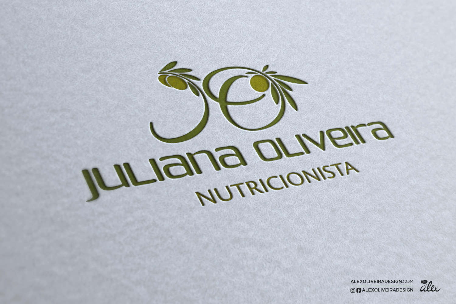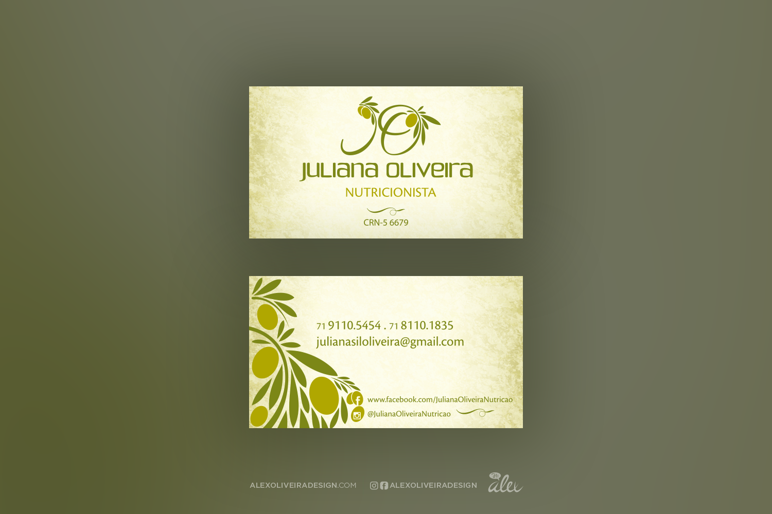 Elaboração de identidade visual para a nutricionista. Constatei o simbolismo de o sobrenome da nutricionista ter a desejável coincidência de ser "Oliveira", uma vez que a oliva é um dos alimentos mais saudáveis que existem.